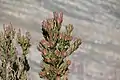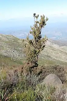 Leucadendron loeriense, the Loerie conebush, is a flower-bearing shrub that belongs to the genus Leucadendron and forms part of the fynbos. The plant is native to the Western Cape, where it is found in the Elandsberg, Baviaanskloof and Groot-Winterhoek mountains. The shrub grows 2.5 m tall and flowers in December and January.