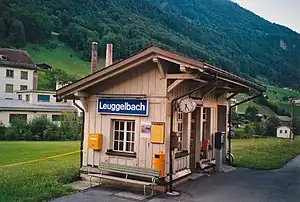 Leuggelbach railway station is a railway station in the municipality of Glarus Süd in the Swiss canton of Glarus. It takes its name from the nearby village of Leuggelbach. The station is situated on the Weesen to Linthal railway line, and served by the hourly Zürich S-Bahn service S25 between Zurich and Linthal.[1][2][3][4]