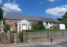 Lewes Friends Meeting House is a Religious Society of Friends (Quaker) place of worship in the town of Lewes, part of the district of the same name in East Sussex, England. A Quaker community became established in the town in 1655 when George Fox, prominent Dissenter and founder of the Religious Society of Friends, first visited. A meeting house opened in 1675 and a burial ground was erected in 1697. The present meeting house, which is a Grade II listed building, was built in 1784 on the site of the burial ground. The building has undergone "a long and complex history of extensions" and rounds of alterations,[1] including the addition of two cottages and a coach-house (since demolished). It is one of a wide range of Protestant Nonconformist places of worship in the town, many of which have been established for centuries.