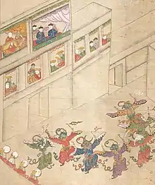 Oral accounts credited the foundation of Ache Lhamo tradition to 14th-century mystic Thang Tong Gyalpo. Lhamo is considered to have both spiritual and non-spiritual roots.[2] The procedure and style in which Ache Lhamo are performed has changed little since the time of inception in the 14th-15th centuries. Today, the same opening rituals are enacted prior to the commencement of every performance, authentic costumes are worn, singing, dance and musical tradition are strictly adhered to.