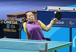Li Qian (Chinese: 李倩; pinyin: Lǐ Qiàn, born 13 February 1989[4]) is a Chinese para table tennis player who has won four gold medals and one silver medal from three Paralympic Games (2008, 2012, and 2016[5]). She has won international team titles with Liu Jing.[1]