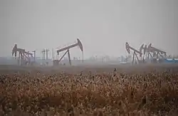 Liaohe is located in China's golden belt of maize production, and serves as a strategic commodity grain base.[4] Liaohe's average annual temperatures in January and July are −9.8 to 8.6 °C and 24.4 °C, with irrigation generally starting in early May.[1] Cultivation activity includes oil and gas exploration, aquaculture, and salt production. Excessive land usage contributes to the deformation of the plain, detrimental to the environment and economic construction projects.[3]