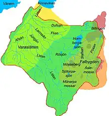 Lidan is a Swedish river in the historical province Västergötland and the current Västra Götalands län.[1] Lidan flows into Vänern by Lidköping and therefore the name of the city Lid-köping.[2] The river begins in the highland of Ulricehamn.[3] Asp is having the river as its habitat. The river is 93 kilometer long and its basin is 2.262 km².
