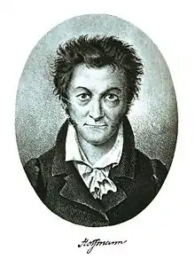The author Ernst Theodor Amadeus Hoffmann was interested in music, wanted originally to become a musician, and added Amadeus to his names in honour of Mozart. He composed one successful opera in 1816, Undine, which became a major influence on the development of German Romantic opera.[1] He wrote his own libretto for the earlier work Liebe und Eifersucht, based on August Wilhelm Schlegel's translation of a play by Pedro Calderón de la Barca, La banda y la flor (The Scarf and the Flower).[2] Hoffmann composed the opera in 1807.[1]