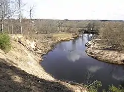 Virtually the entire river flows along the Lowland of Central Latvia (Latvian: Viduslatvijas zemiene).[1] The river meanders through a wooded area, the pool is heavily drained in some places. The shores are generally flat, with occasional Devonian bare rocks. There are many floodplains in the lower reaches of the mouths of rivers Krievupe and Tumšupe.[2]