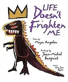 Life Doesn't Frighten Me is a children's book by American writer Maya Angelou.[1] Originally released in 1993 by Stewart, Tabori, & Chang, the book was conceived and edited by Sara Jane Boyers. It combines a poem written by Angelou with illustrations by American artist Jean-Michel Basquiat.[2] Neither the poem nor the paintings were created specifically for children, yet their simplicity convey feelings to create a "brave, defiant" tale that "celebrates the courage within each of us, young and old."[3] For the 25th anniversary, Life Doesn't Frighten Me was re-released by Abrams Books in 2018.[4]
