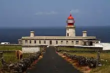 Initially projected under the 1883 Plano Geral de Alumiamento e Balizagem (Illumination and Buoyage General Plan) for the settlement of Ponta Delgada, its construction was pre-empted by the 1902 commission, which intended to develop a new lighthouse based on modern technologies at the time.[4] The plan called for the construction of a fourth-order lighthouse, and was projected by the commission for the area of Ponta do Albarnaz, 3 kilometres (1.9 mi) away from the settlement, in an elevated position along the western coast that allowed visibility in Corvo and the entire northwest coast of Flores (the promontory of Ponta do Albernaz).[4]