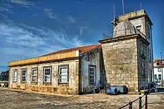 ConstructionRectangular stone tower with cupola, addorsed by tower and fiscal guard building