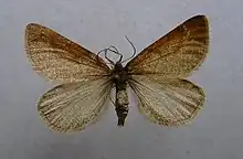 The wingspan is 27–30 mm for males. Females have reduced wings. Adults are on wing from October to December.
