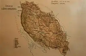 Lika-Krbava county shared borders with the Austrian Kingdom of Dalmatia and Bosnia-Herzegovina and the county of Modruš-Rijeka (also in Croatia-Slavonia). The county has a strip of Adriatic Sea coast. Its area was 6211 km2 around 1910.