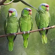 The lilac-crowned amazon (Amazona finschi), also known as lilac-crowned parrot, Finsch's parrot or Finsch's amazon, is a parrot endemic to the Pacific slopes of Mexico. Also known as Finsch's amazon, it is characterised by green plumage, a maroon forehead, and a violet-blue crown and neck.
