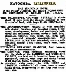 - ↑ "A MOUNTAIN HOME". The Daily Telegraph. No. 10830. New South Wales, Australia. 7 February 1914. p. 15 – via National Library of Australia.