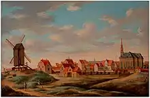 The first windmill on the site was a post mill built in 1669. It was one of numerous windmills which were constructed on Copenhagen's Bastioned Fortifications. The only other of these to survive today is the windmill at the Kastellet fortress. In the event of siege, a fortified city needed secure supplies, including supplies of flour and rolled groats. In the same time, a location on the bastions provided favourable wind conditions.[4]