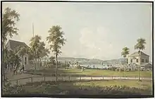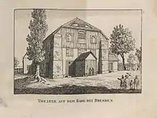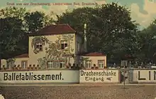 In 1734, a Lusthäuschen was built behind the Black Gate directly on the Elbe, which in 1753 received a licence to serve beer and wine ("Drachenschänke") as well as to bake, slaughter and keep a forge. After the doctor Peter Ambrosius Lehmann received permission to set up a mineral bath, he had an open-air bath with bathhouse built there in 1763, which offered 28 tubs as well as summer quarters in 1824 and was operated until 1860. In 1764, Christian Gottlob Reuß built a garden restaurant there. In 1766, Carl Christian Lincke acquired the area and developed it into a place for excursions, building a summer theatre for travelling theatre companies on it in 1775/76, where, among others, the Seyler Theatre Company and the Secondasche Truppe moved in.[2] Lincke was favoured by the 20-year tax exemption. In 1776, a new comedian house was created, which provided excellent conditions for the music theatres and singspiels, and later operas, that performed in the summer, thus filling the gap that the electoral theatres could not serve. From 1816–17 to 1858, the Royal Court Theatre or King Friedrich August I leased the "Theater auf dem Linckeschen Bade" as an additional venue, alongside the Morettisches Opernhaus, for the summer months.[3] This was followed in 1853 by a large concert hall built by Bernhard Hempel,[4] which, however, burned down in 1859. A year earlier, the theatre building was also demolished.[5] In 1867, it reopened as the "Grand Théâtre des Varietés". By 1901, there was an elegant wine restaurant, a tunnel tavern, a hall, as well as a concert garden and numerous verandas, collectively known as the "Restaurationsgarten", which existed at least until the 1920s[6] and is reported to have had 15,000 seats in 1911. During the Bombing of Dresden towards the end of the Second World War, the area was largely destroyed. Only the "Drachenschänke" remained, which was used as a restaurant until a few years ago, but now houses flats.