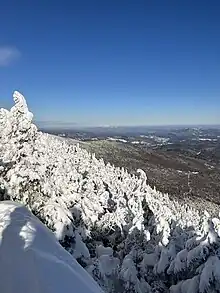 The Long Trail traverses the summit ridge of Lincoln Peak. Sugarbush Resort is on the northeast slope of the mountain.
