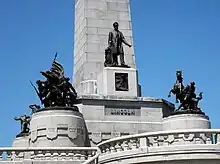 Infantry and Cavalry statues at the corners of the obelisk.