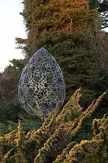 As well as art for halls and lecture theatres, sculptures by Chris Booth, Llew Summers, and Neil Dawson were purchased for the university grounds; Llew Summers' Joy of Living (1992), the first outdoor sculpture purchased, is a popular photo spot for graduating students.[1] Graham Bennett's 2012 work Oversight was created during his time as Sculptor-in-Residence.[5]