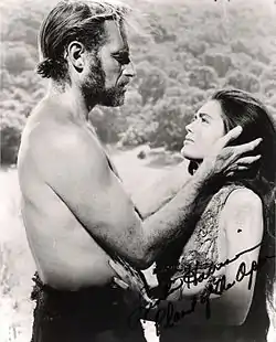 "Heston had a quiet quality about him and was very courteous with me. He encouraged me to favor the camera. I was a newcomer in many ways – which may have helped my character. I'm sure Heston had his doubts about me; however, he never showed them. He treated me more like a child than an adult and not much was discussed between us, in character or out. When you idolize someone like I did, you tend to submit rather than assert yourself. Again, this worked in our roles and the relationship between us, as Taylor and Nova.[25] Heston was terrific to work with and so helpful and such a gentleman."[16]