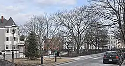 Linden Park is a small municipal park at Linden Place and Linden Street in Brookline, Massachusetts, USA. The triangular park was created in 1843 as one of several parks in the Lindens subdivision of the area by Thomas Aspinwall Davis, which was the first residential subdivision created in Brookline. In addition to generous setbacks, the deeds for the lots of this subdivision contained covenants excluding the sale to "Negroes or natives of Ireland".[3]