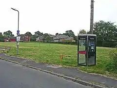 Half a mile to the west, beside the M6, Drawdykes Castle is a former pele tower, converted to a house with a Classical Revival facade in 1676.[3]