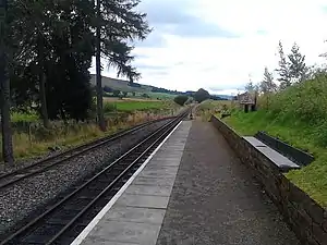 The station is located on the alignment of the former Alston Line, which ran from Haltwhistle to Alston, until the line's closure by the British Railways Board in May 1976.[3] However, unlike stations at Alston and Slaggyford, Lintley Halt was not part of the original line, instead being purpose-built for the heritage railway.