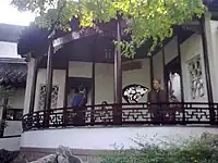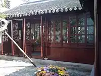 A three bay hall used by the Bei family as an ancestral temple. A tablet is inscribed with praise for Ni Zan's Picture Scroll of Lion Grove Garden. The inscription, by Gu Tinglong, reads, "elegant aroma of clouds and woods". |