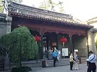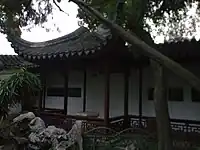 Built during the 1917 renovation as an entry into the courtyard of the Nine Lion Peak rockery. It is a three bay hall with a portico on the north facade and a square pavilion attached to the south facade. |
