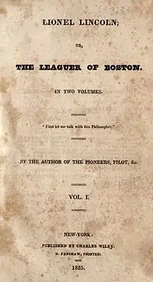 Contemporary critics of Cooper had a decidedly negative reception of Lionel Lincoln.[1] American writer John Neal was very disappointed: "It is not such a book, as we might have, and shall have, we do hope yet; a brave, hearty, original book, brimful of descriptive truth-of historical and familiar truth; crowded with real American character; alive with American peculiarities; got up after no model, however excellent; wove [sic] to no pattern, however beautiful; in imitation of nobody, however great." To Neal, Lionel Lincoln was an unrealistic imitation of the Scottish historical novelist Sir Walter Scott, and was completely unsatisfactory.[6]