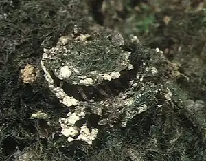 They are active at night and live for many years. Although most species live in burrows, cave-dwelling species also fasten their retreats to the cave walls. Both burrows and retreats are sealed with woven doors.[5] Trapdoor nests are generally built in shady areas with moss or sparse vegetation. Some make silk trip-lines radiating away from the burrow entrance. Adult males sometimes wander in search for females, but females rarely leave their burrows. The respiratory system consists only of book lungs, which could help explain why they are relatively inactive.[6]