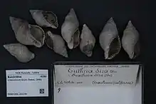 The dire whelk was first described by Lovell Augustus Reeve in 1846 as Buccinum dirum.[1] In the early 20th century, William Healey Dall would come to the conclusion that the species belong to a genus up until then known only from the Atlantic fossil record, Searlesia.[4][5] This remained the status quo for most of the century, with more living species from both the Atlantic and Pacific added to Searlesia until 1991, when Geerat J. Vermeij split the Pacific species into a separate genus Lirabuccinum with B. dirum as its type.[6]