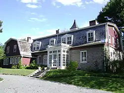Sometime after Newberry Davenport's demise the house was dramatically altered to conform to more of an estate taste with the addition of a gambrel-roofed second floor, porches and interior changes. The roof top ventilator was a functional part introducing the then modern idea of healthful living into the venerable structure. The principal (sound-side) rooms on the interior were embellished with new trim in a restrained manner. Windows were extended to floor level on the piazza and most sash were replaced with casements with an unusually configured muntin pattern. The rear and kitchen rooms remained essentially unaltered in the transformation. The property had been reduced in size to only a few acres as a result of the sale of waterfront lots immediately before the house to Adrian Iselin, a New York financier, and Clarksen N. Potter, former Congressman. The land level may have been further built up at this time and driveways rerouted.[8]