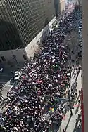 100,000[127] | Madison Park – Frank Ogawa Plaza (via western shore of Lake Merritt, from Grand Ave to Broadway).[128] About 100,000 people marched in Oakland, extending 40 city blocks; BART had to add six extra trains to accommodate the throngs of people.[127] | |