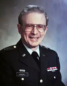 1979–1983 | William F. Engel, a graduate of Reno High and the University of Nevada, Reno, served as an executive assistant in the Nevada Highway Department before his appointment to adjutant general in 1979. He also served as the state's director of selective service and was an active volunteer in the community. During his tenure as adjutant general, Engel survived injuries suffered during a commercial airline flight crash landing while on his way to visit soldiers training at Camp Ripley, Minn.[9][19] |