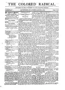 - ↑ "About The colored radical. [online resource] (Leavenworth, Kan. ;) 1876-1876". Chronicling America. Library of Congress. Retrieved 2020-01-18.