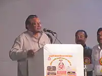 Shyama Charan Gupta, incumbent Member of Parliament of Allahabad addressing the Agrahari Vaishya community in Akhil Bharatiya Agrahari Samaj Sentenary Ceremony on 28 December 2014 in New Mumbai[1]