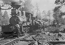 Saginaw and Manistee Lumber Company log train in the Kaibab National Forest, circa 1900.