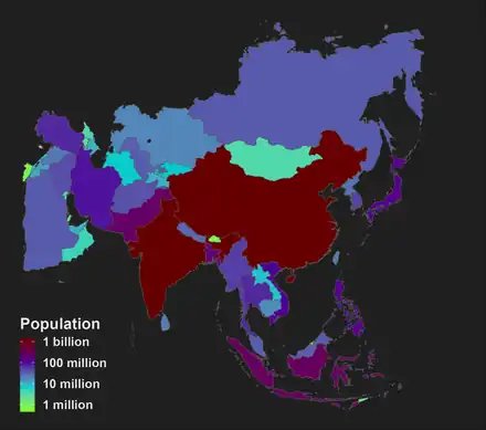 - ↑ Asian population excludes Western New Guinea.[5] Transcontinental country mainly in Southeast Asia and partly in Oceania.
