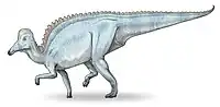 Aralosaurus 1968 Bostobe Formation, (Late Cretaceous, Santonian to Campanian)  Kazakhstan Its crest has been interpreted as being arch-shaped as in kritosaurin hadrosaurs, but this cannot be confirmed