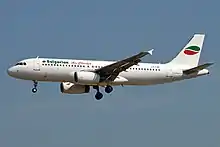 A Bulgarian Air Charter Airbus A320-200 landing at Frankfurt Airport, Germany in 2018.