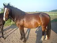 | Ostpreußisches Warmblut Trakehner Abstammung[1] | Trakehner | ![]() | Breeding at the Trakehnen stud ended in October 1944; the present German-language name means roughly "East Prussian Warmblood of Trakehner origin" |