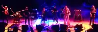 Gong are a Franco/British rock band founded by Australian vocalist/guitarist Daevid Allen and English vocalist Gilli Smyth in 1967.[1] The bands first recording line-up featured Allen and Smyth alongside bassist Christian Tritsch, drummer Rachid Houari and saxophonist/flautist Didier Malherbe.[2] The band's current line-up from Allen's death on 13 March 2015 features lead guitarist Fabio Golfetti (in 2007 and since 2012), bassist Dave Sturt (since 2009) saxophonist/flautist Ian East (since 2010), vocalist/guitarist Kavus Torabi (since 2014) and drummer Cheb Nettles (since 2014).[3]