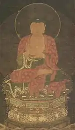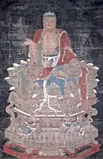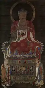 | Amitabha, colour on silk 絹本著色釈迦如来像 kenpon chakushoku Shaka Nyorai zō | C14 | Kyoto | Zenrin-ji | Important Cultural Property | 177.9 centimetres (5 ft 10.0 in) by 106.9 centimetres (3 ft 6.1 in) | 35°00′52″N 135°47′43″E / 35.014525°N 135.795292°E | [4] | |