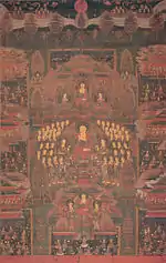 | Amitabha with Eight Great Bodhisattvas 阿弥陀八大菩薩像 | 2nd half C14 | San Francisco | Asian Art Museum | ![]() | 151.1 centimetres (4 ft 11.5 in) by 88.7 centimetres (2 ft 10.9 in) | 37°46′49″N 122°24′59″W / 37.780213°N 122.416416°W | ||
