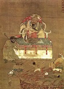 | Wu-kuan Wang, Fourth of the Ten Kings of Hell | C14 | New York City | Cleveland Museum of Art | sold at Christie's in 1992; Cleveland Museum of Art 2019.224[22] | ![]() | 61.2 centimetres (2 ft 0.1 in) by 45 centimetres (1 ft 6 in) | ||
