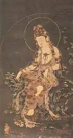 | Water-Moon Avalokiteśvara 楊柳観音像 Yōryū Kannon zō 수월관음도 | late Goryeo | (Fukuoka Prefecture) | 108.5 centimetres (3 ft 6.7 in) by 57.1 centimetres (1 ft 10.5 in) | [12] | ||||