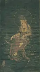| Water-Moon Avalokiteśvara, colour on silk 絹本着色楊柳観音坐像 kenpon chakushoku Yōryū Kannon zazō 수월관음도 | mid-C14 | Shimonoseki | property of Kōzan-ji; kept at the Shimonoseki Chōfu Museum (下関市立長府博物館) | Prefectural Cultural Property | ![]() | 146.9 centimetres (4 ft 9.8 in) by 85.8 centimetres (2 ft 9.8 in) | 33°59′44″N 130°58′56″E / 33.995474°N 130.982255°E | |
