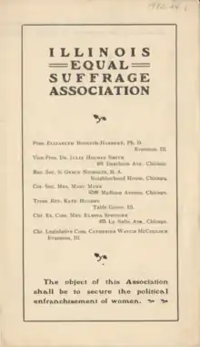- ↑ "Illinois Women Gain the Vote in 1913". Suffrage 2020 Illinois. 2019-05-29. Archived from the original on 2021-04-13. Retrieved 2020-10-27.