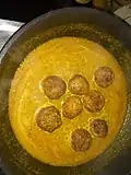 | Kofta | ![]() | Gram flour balls fried with vegetables. Gram flour, veggies, rolled into balls with gram flour and fried in oil and then cooked with curry. | Vegetarian |