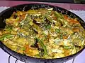 | Aloo shimla mirch | ![]() | Green capsicum with potatoes sautéed with cumin seeds, onions, tomatoes, ginger-garlic paste, turmeric, red chilli powder and garam masala | Vegetarian |