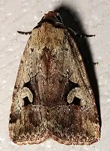 Cosmia calami[26] | American dun-bar moth | Cosmia[lower-alpha 4] | Noctuidae | 1876 |